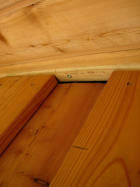 Dieses vom Holzbauer kostenlos gewährte feature hat leider den Nachteil, daß die Vögel auch teilweise an die Dämmung gelangen, die sie rauspicken bzw. teilweise zum Nestbau benutzen.